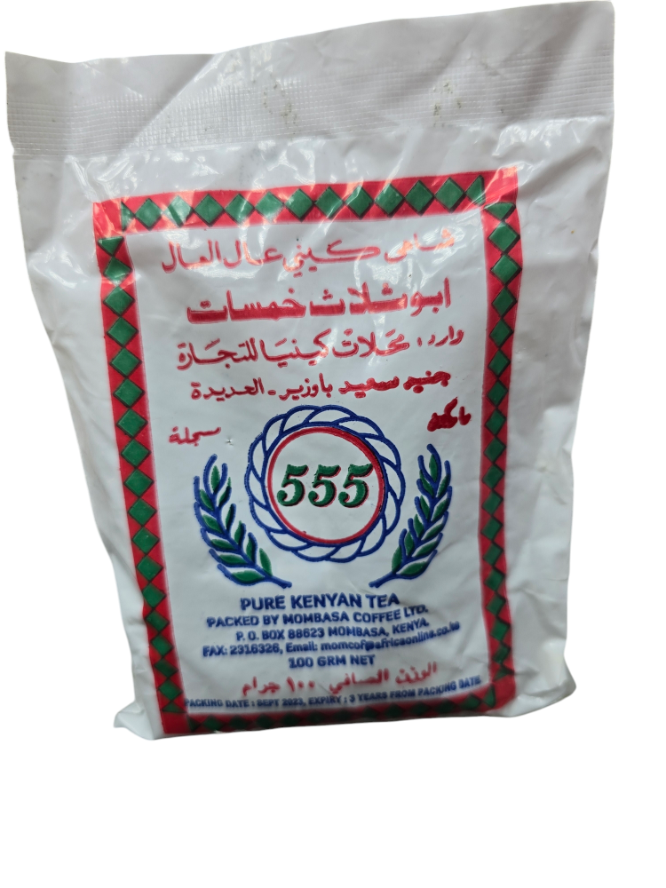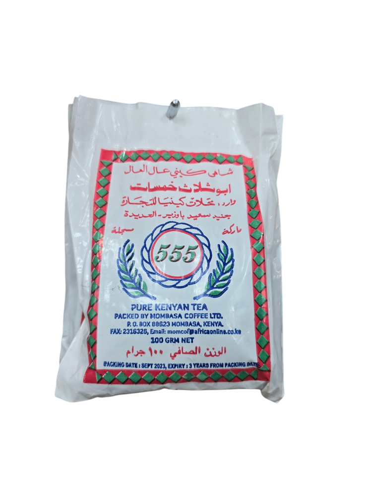 معا شاي كيني ثلاث خمسات 555، المعبأ بوزن 100جرام. يعتبر هذا الشاي من أفضل أنواع الشاي الكيني، حيث يتم اختيار أوراق الشاي بعناية للحصول على طعم قوي ومذاق مميز. يتميز شاي كيني ثلاث خمسات بقدرته على منحك انتعاشًا ونشاطًا بفضل نكهته العميقة والمميزة التي تناسب جميع الأوقات والمناسبات.