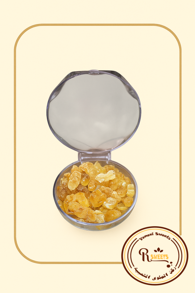 - الرائحة: قم بفرك القليل من اللبان بين راحتي يديك. إذا انبعثت منه رائحة قوية ونفاذة، فهو أصلي. أما إذا كانت رائحته ضعيفة أو تشبه البلاستيك، فهو مغشوش.